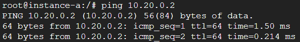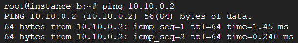 instance-b 에서 instance-a로 ping 테스트 결과
