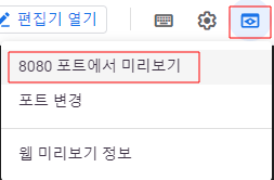 을 클릭한 후 "8080 포트에서 미리보기" 메뉴를 선택합니다.