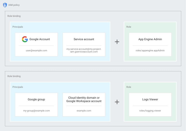 구성원은 Google 계정(최종 사용자용), 서비스 계정(앱 및 가상 머신용), Google 그룹 또는 리소스에 액세스할 수 있는 Google Workspace 또는 Cloud ID 도메인일 수 있습니다.