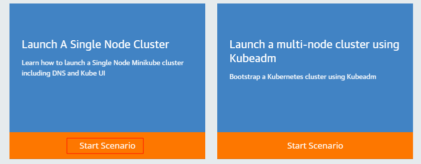 "Launch A Single Node Cluster" 시나리오부터 시작합니다. "Start Scenario"를 클릭합니다.