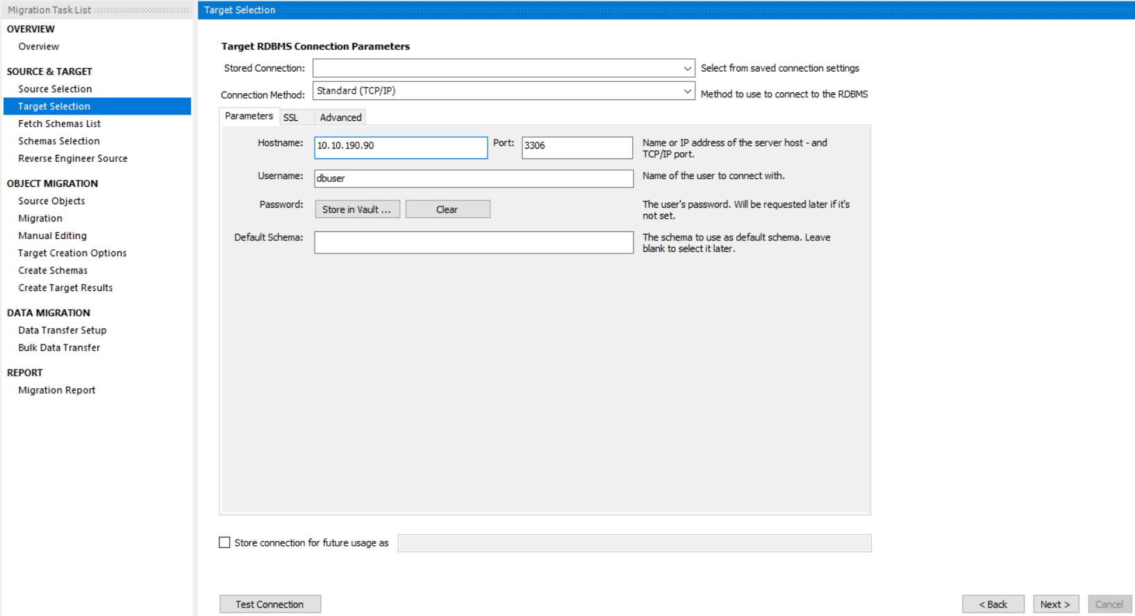 - Hostname : 타겟 DB의 IP나 호스트명을 입력