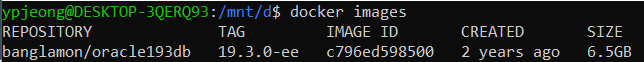 docker pull 명령어로 oracle datbase 19c 이미지를 다운로드한다.