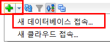 SQL Developer실행 후 좌측 상단의 [+] 를 클릭한 후 새 데이터베이스 접속 메뉴를 클릭한다.