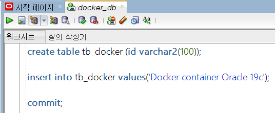 Oracle DB가 설치된 컨테이너에서 SQL 명령어 수행