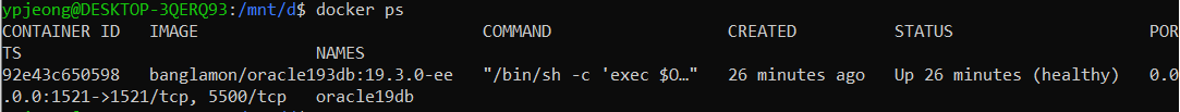 <참고> docker exec -it oracle19db bash -c "source /home/oracle/.bashrc; sqlplus /nolog"