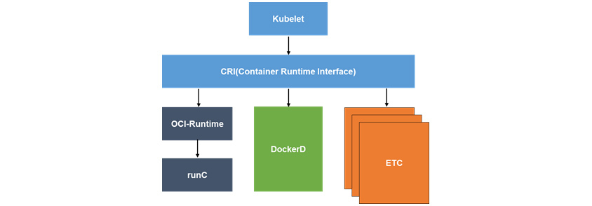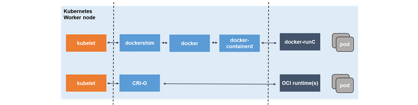 [그림 5] 쿠버네티스와 도커 및 CRI-O
