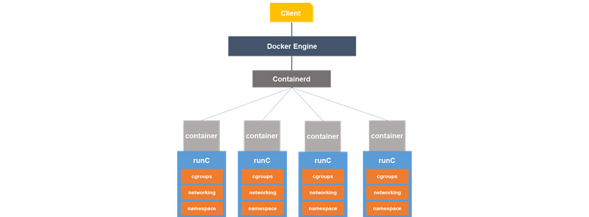 이처럼 컨테이너를 실행하려면 저수준 및 고수준 컨테이너 런타임이 필요하기 때문에 OCI 런타임과 함께 도커가 그 역할을 했습니다. 도커는 docker-containerd라는 가장 잘 알려진 고수준 컨테이너 런타임을 제공합니다. containerd도 runC와 마찬가지로 도커에서 컨테이너를 실행하기 위해 개발되었으나 나중에 독립적인 라이브러리로 추출되었습니다.