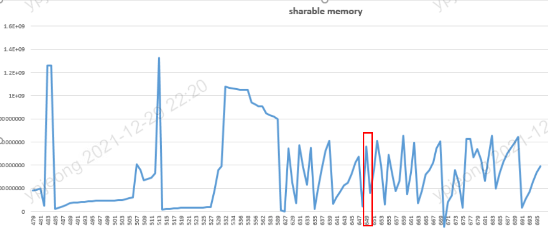 장애 시점에 sharable_mem 값이 상당이 높게 나왔다. 그러나 다른 날의 자료와 비교해 볼 때 상대적으로 특이사항은 보이지 않는다.