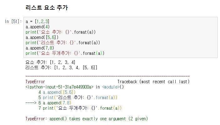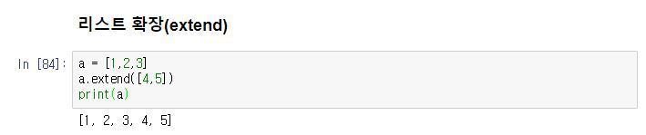 여러개의 리스트요소를 추가하고 싶을때 맨아래 extend를 참고하시면 됩니다.