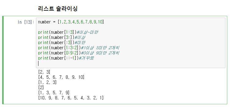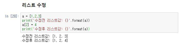 이런식으로 리스트이름 = [] 대괄호 안에 숫자나 문자등을 넣어서 만들 수 있습니다.