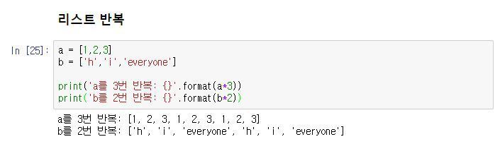 리스트의 기초는 너무 쉬워요~! 그냥 리스트*숫자를 사용하면 숫자만크 리스트를 반복시킵니다