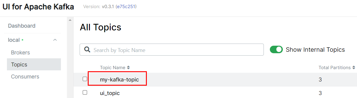 카프카 브로커 명령어로 topic을 생성한 후 UI 화면으로 조회해 봅니다.