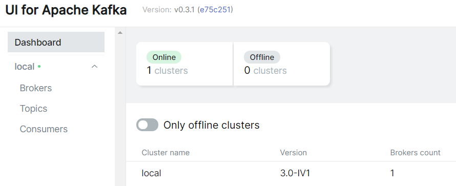 -e KAFKA_CLUSTERS_0_NAME=local \