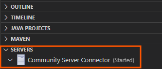 설치가 완료되면 VSCode 의 좌측화면 하단에 "SERVER" 메뉴가 생기고 하위에 "Community Server Connector(Started)"가 생긴 것을 확인할 수 있습니다.