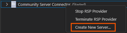 "Community Server Connector(Started)" 마우스 오른쪽 버튼을 클릭한 후 "Create New Serve"를 클릭합니다.