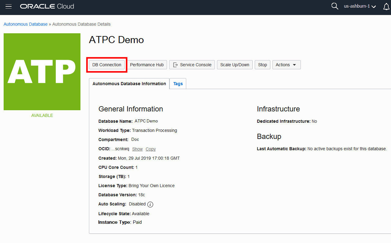 Provide basic information for the Autonomous Database: