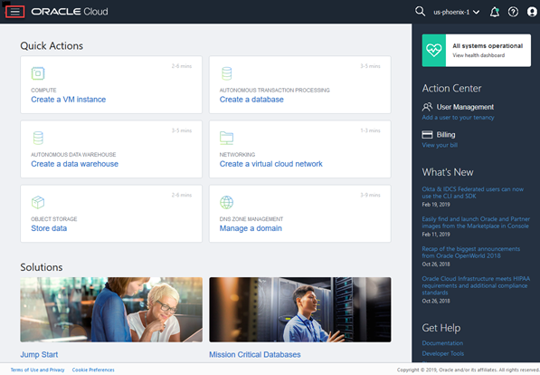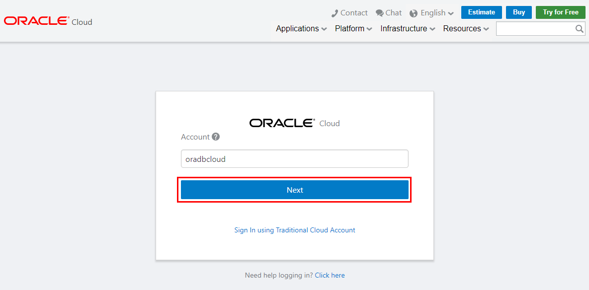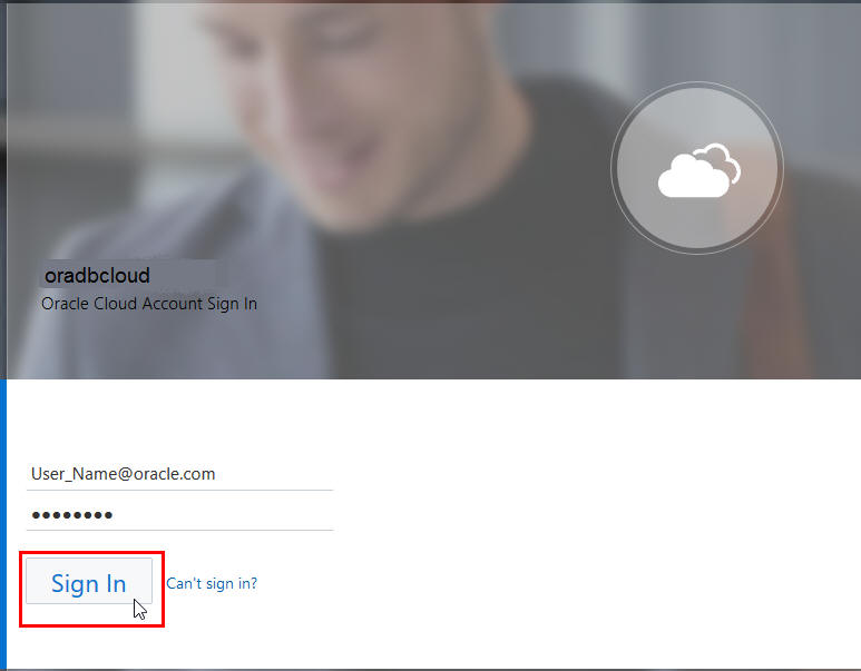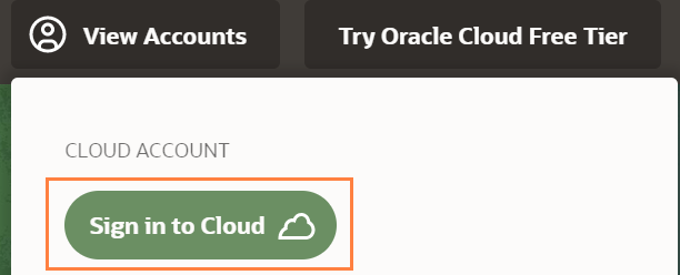Log in to your Oracle Cloud Infrastructure Console with the following credentials provided by your Oracle Cloud administrator: cloud tenant, user name, password.