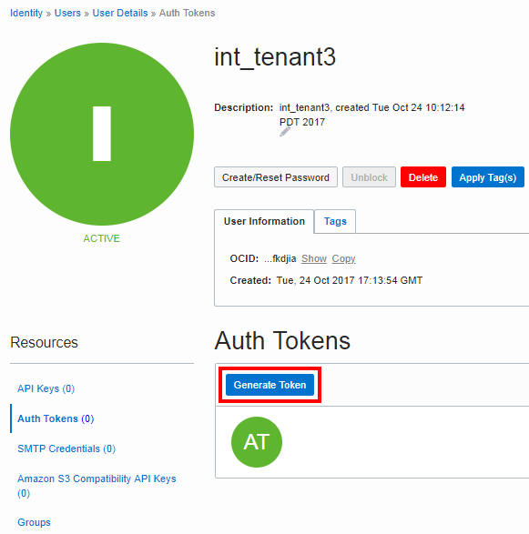 To load data from an Oracle Cloud Infrastructure Object Storage object store, you need to create an Auth Token for your object store account. The communication between your Autonomous Transaction Processing database and the object store relies on the Auth Token and username/password authentication.